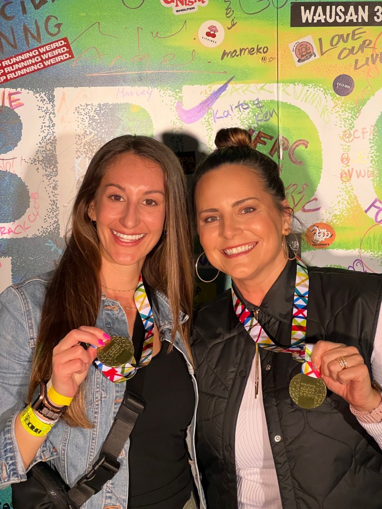 Yep. You read that right, Japanese gum made the last few miles A GRIND. At the 20K mark, Bowen asked if we wanted gum. I said OF COURSE. Chewing gum is a distraction. We took off. Then, around mile 22, I started to feel sick. Like, SICK SICK. I looked at Ashley and said, “I don’t think I’m going to finish this.” And I think she believed me. My legs were tired, but still going. My head and heart were a bit pissed off, but I was still moving. But my stomach, it was in crisis mode. And it seemed as though, on the back half of the course there were no bathroom stops. I needed to throw up. I needed the bathroom. The last 3 miles, was me fighting to keep going and get it done. I wanted to PR, I knew I wouldn’t hit my goal but I was so close. It was miserable. I finished and I finally was able to make my stomach feel better. #IYKYK